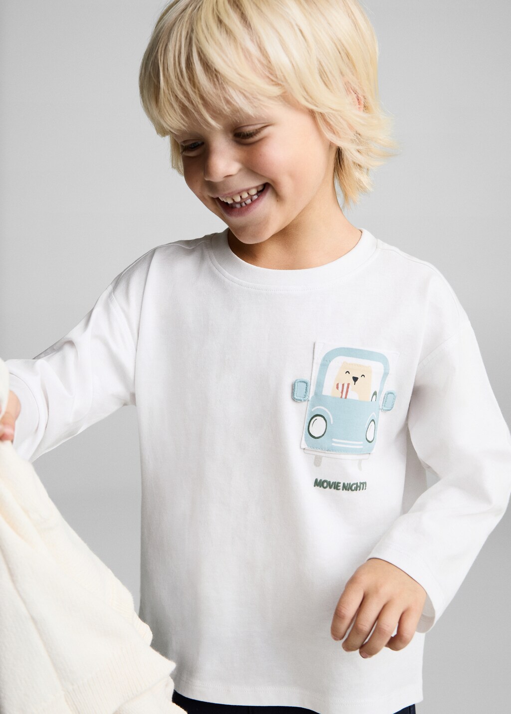 100% Cotó. Disseny recte. Dibuix estampat amb relleu a la part davantera. Dibuix estampat amb relleu a la part posterior. Butxaca de pedaç al pit. Coll barca. Màniga llarga.