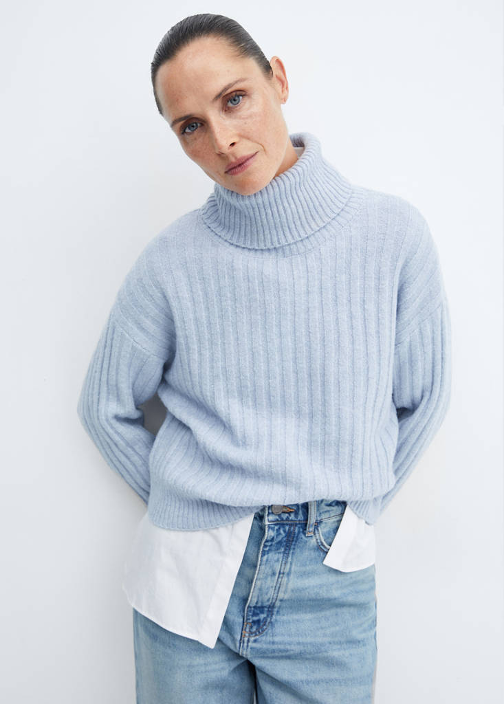 Teixit barreja de llana. Teixit de punt gruixut. Disseny recte. Disseny de canalé. Coll cigne. Màniga llarga. Sense tancament. Looks d'oficina. El color gris és exclusiu online