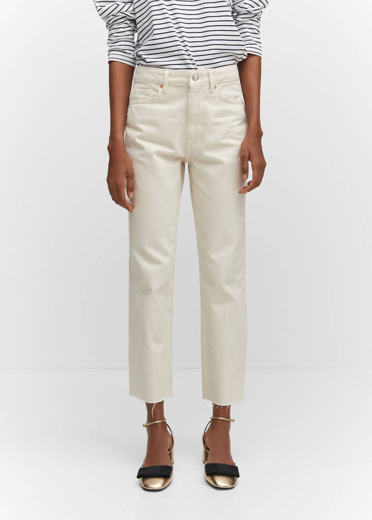 Teixit de cotó estil texà , disseny recte, disseny crop, cintura mitja, travetes, cinc butxaques, tanca de cremallera i botó, vora desfilada, llarg interior 68 cm, disponible Plus.