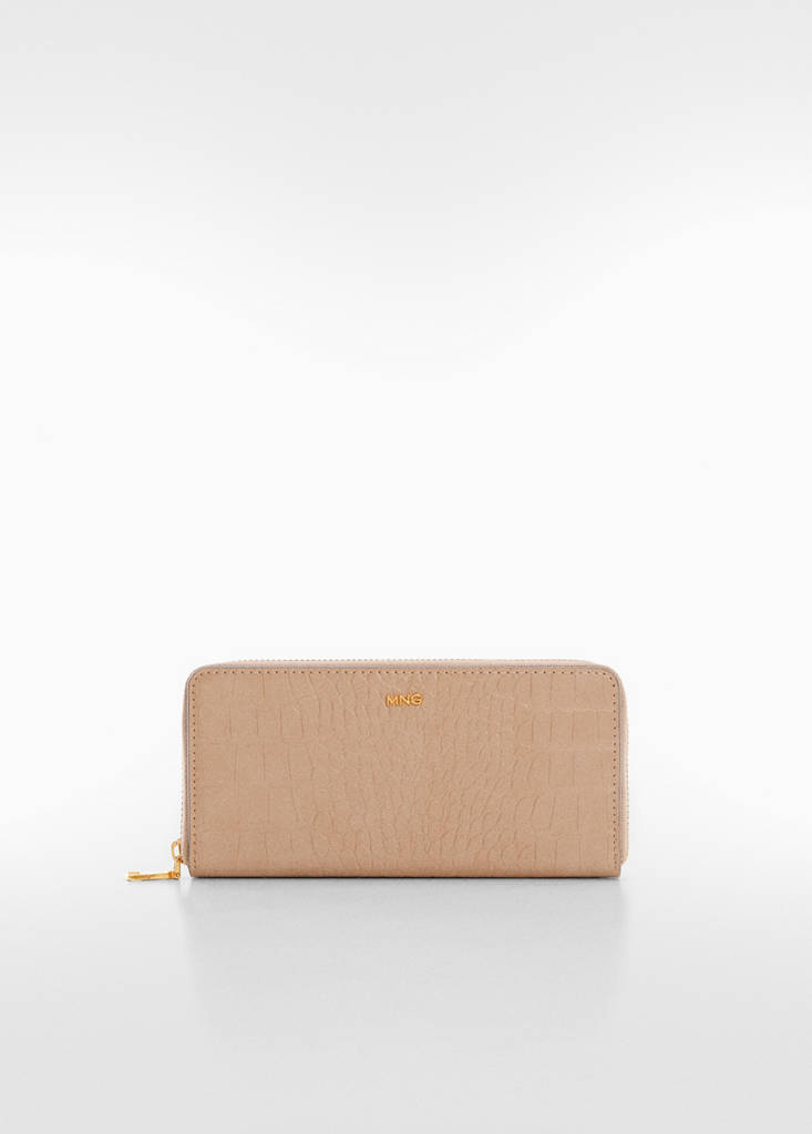 Mida gran, efecte cocodril, butxaca interior de cremallera, múltiples ranures per a targetes, tanca de cremallera, logotip en relleu, folre interior.