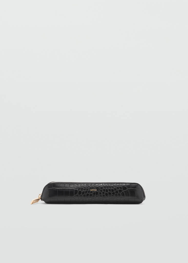 Efecte pell de cocodril. Disseny fi. Tancament de cremallera. Logotip en relleu. Folre interior