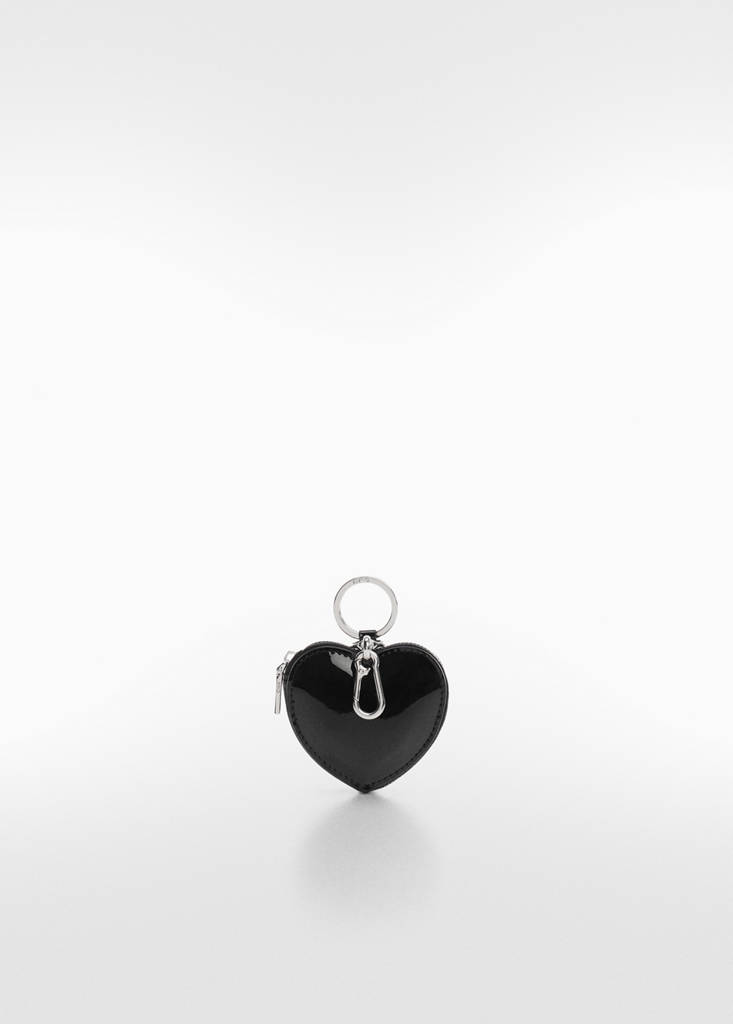 Mida petita, efecte xarol, disseny cor, tanca de cremallera, detall clauer, folre interior.