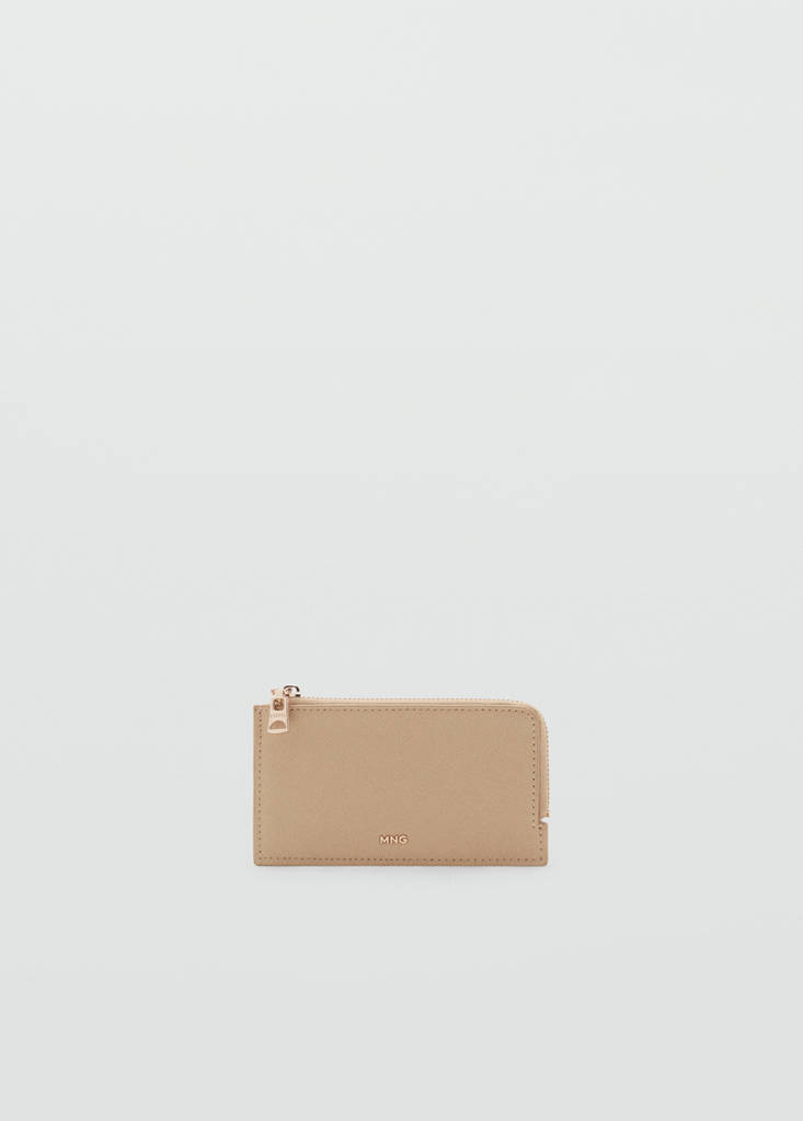 Mida mitjana. Efecte safiano. Logotip en relleu. Múltiples ranures per a targetes. Tancament de cremallera. Folre interior