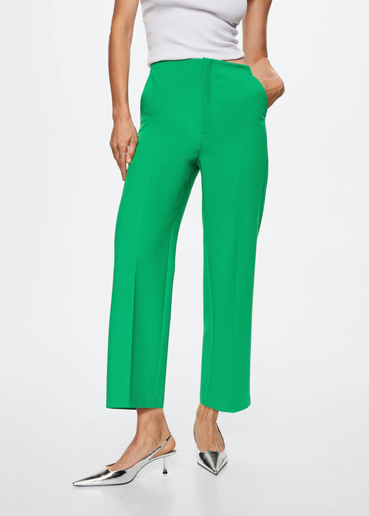 Estil vestit. Disseny culotte. Disseny crop. Tanca oculto de botó, ganxo i cremallera. Dues butxaques laterals. Tallatge més petit d'allò que és habitual