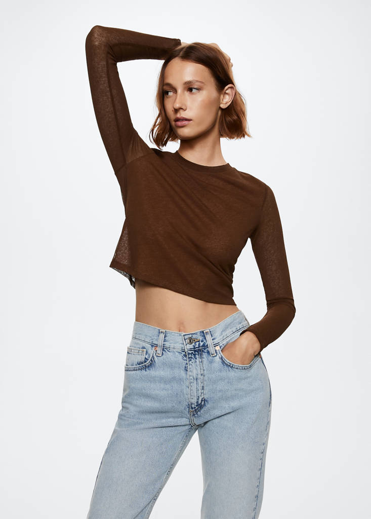 Teixit fluid. Teixit semitransparent. Disseny recte. Coll rodó. Màniga llarga. Total look