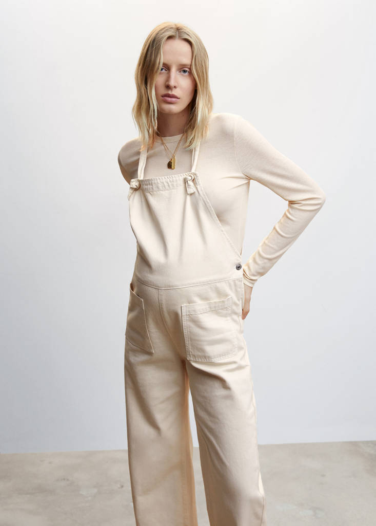 Teixit de cotó estil texà . Disseny recte. Disseny crop. Coll recte. Elàstics creuats a l’esquena. Dues butxaques aplicades laterals. Dues butxaques aplicades a la part posterior. Llarg interior 68 cm. Et recomanem comprar la teva talla habitual. Proporciona comoditat i llibertat de moviment. Premamà
