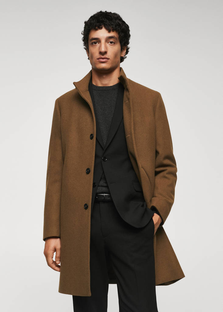 Disseny llarg. Teixit barreja de llana reciclada. Coll xemeneia. Màniga llarga. Dues butxaques laterals. Obertura posterior. Tanca oculta de botons. Folre interior. Butxaca interior. El modelo porta una talla M