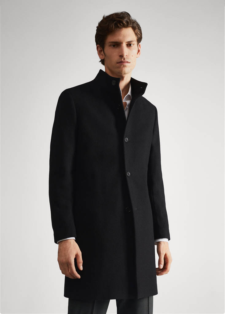 Disseny llarg. Teixit barreja de llana reciclada. Coll xemeneia. Màniga llarga. Dues butxaques laterals. Obertura posterior. Tanca oculta de botons. Folre interior. Butxaca interior. El modelo porta una talla M