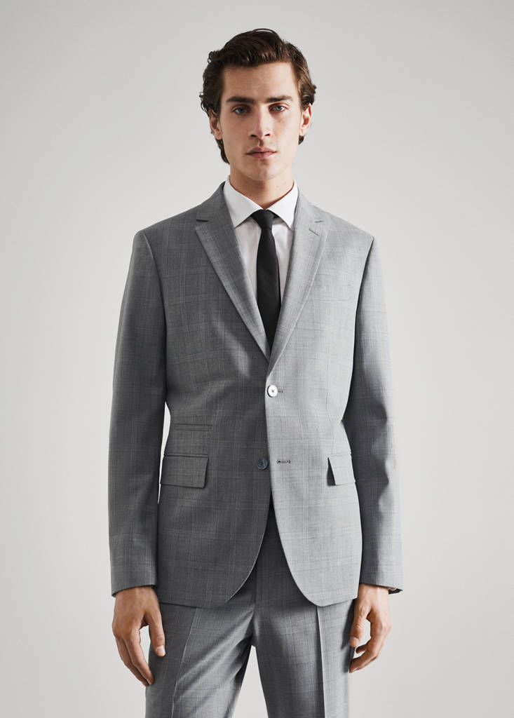 Slim fit. Estampat quadre Príncep de Gal·les. Solapes amb trau. Màniga llarga botonada. Butxaca de rivet al pit. Dues butxaques de solapa a la part frontal. Dues butxaques interiors. Doble obertura posterior. Tanca de botons. Folre interior. El model mesura 187 cm i porta una talla 50. Wrinkle free: teixit antiarrugues. Termoregulador: aquest teixit ofereix una transpirabilitat òptima per a mantenir-te a una temperatura estable. Teixit Bi-strech: la seva flexibilitat en totes direccions proporciona adaptabilitat i confort
