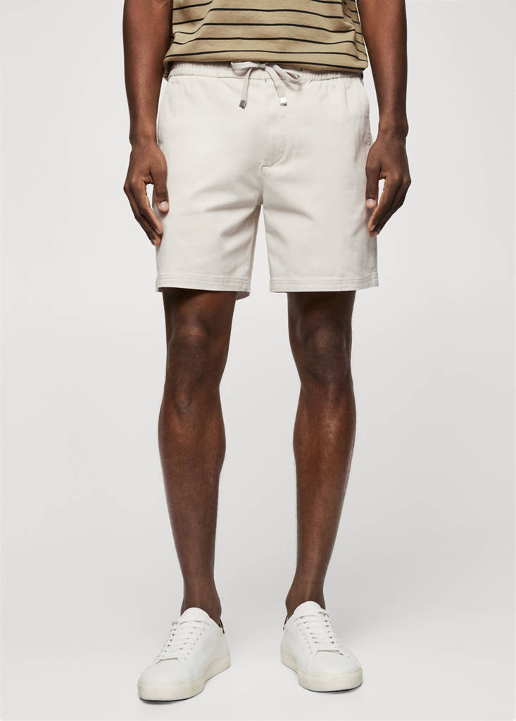 Slim fit. Disseny curt. Teixit de cotó. Cintura elàstica amb cordill. Dues butxaques laterals. Dues butxaques de rivet a la part posterior. El model mesura 187 cm i porta una talla 42