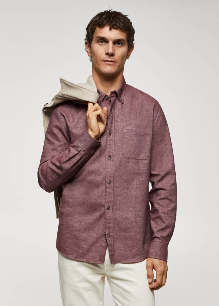 Regular fit. 100% cotó. Teixit fil-à-fil. Coll clàssic botonat. Butxaca de pedaç al pit. El color bordeus és exclusiu online. Tancament davanter amb botons. Màniga llarga botonada. Vora arrodonida