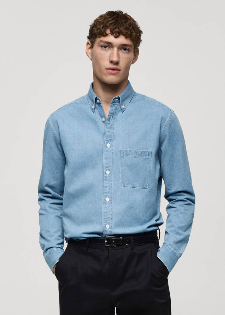 Classic fit. 100% cotó. Teixit de cotó estil texà vaquer. Coll camiser. Tancament de botons. Butxaca de pedaç al pit. Vora arrodonida. Punys abotonats