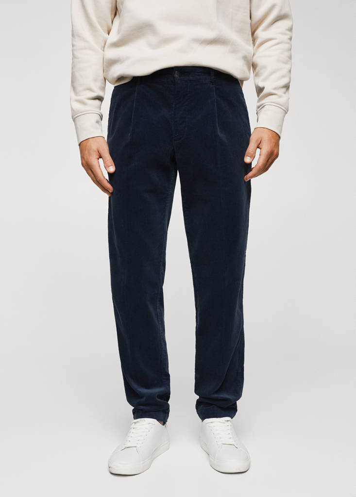Pantalons pana pincesPreu inicial ratllat [€ 47,99 ]€ 47,99Preu actual [€ 37,99 ]€ 37,99-21 %Selecciona un colorBlau indiSelecciona la teva talla38No disponible. Ho vull!40No disponible. Ho vull!42No disponible. Ho vull!44No disponible. Ho vull!46No disponible. Ho vull!MidesAvisa'mTeixit barreja de cotó. Straight-fit. Teixit de pana. Disseny recte. Travetes. Detall de pinces. Tanca de cremallera i botó. El model mesura 183 cm i porta una talla 42Detalls, composició i curesDisponibilitat a botiga