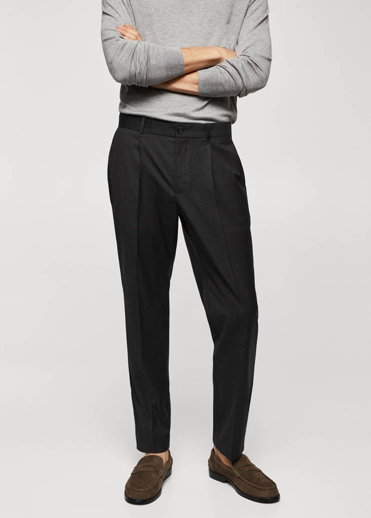 ESSENTIALS: Fets per durar. Teixit barreja de llana verge. Disseny ample. Slim fit. Tancament de cremallera i botó. Detall de pinces davanteres i posteriors. Dues butxaques davanteres. Dues butxaques amb botó a la part posterior