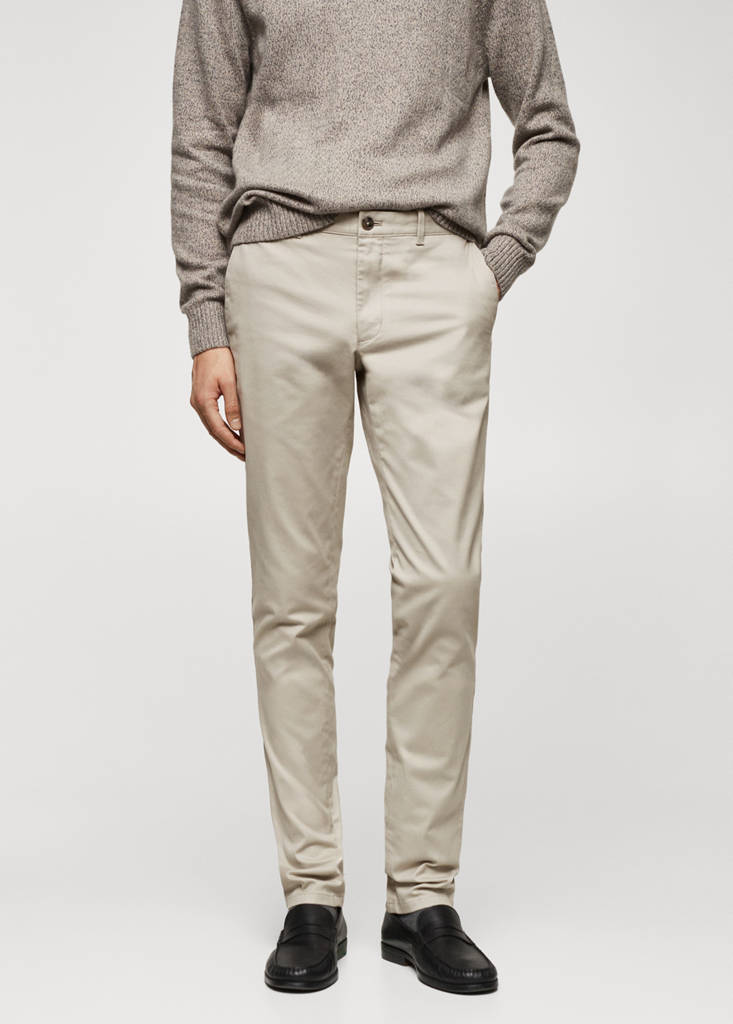 ESSENTIALS: Fets per durar. Slim fit. Teixit elàstic de cotó. Travetes per a cinturó. Tancament de cremallera i botó. Cinc butxaques. Dues butxaques laterals. Butxaca moneder. Dues butxaques de trau a la part posterior. Els pantalons mesuren 113 cm per a la talla base 42: 7 cm més del que és habitual