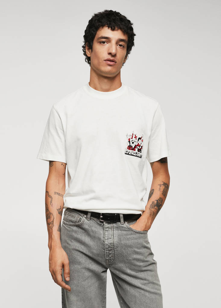 Col·lecció Càpsula Jeremyville Qatar World Cup 2022 . Regular fit. Teixit barreja de cotó. Coll rodó. Màniga curta. Dibuix brodat al pit. Brodat a la part posterior. El model mesura 185 cm i porta una talla M
