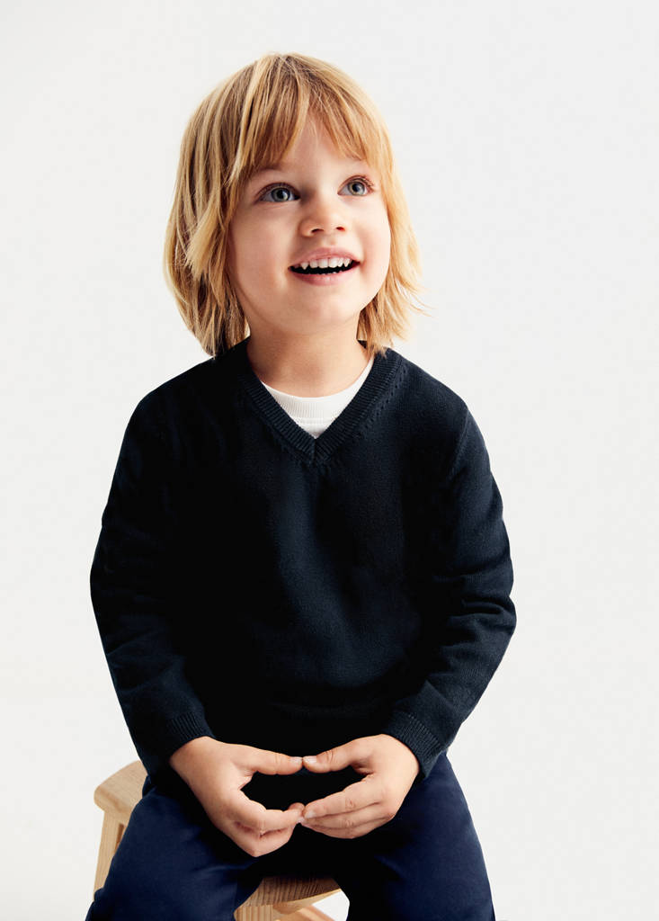 Col·lecció Bàsics. Col·lecció festa, cerimònia i comunió. Teixit de cotó. Teixit de punt fi. Disseny recte. Coll en punta. Màniga llarga. Sense tancament