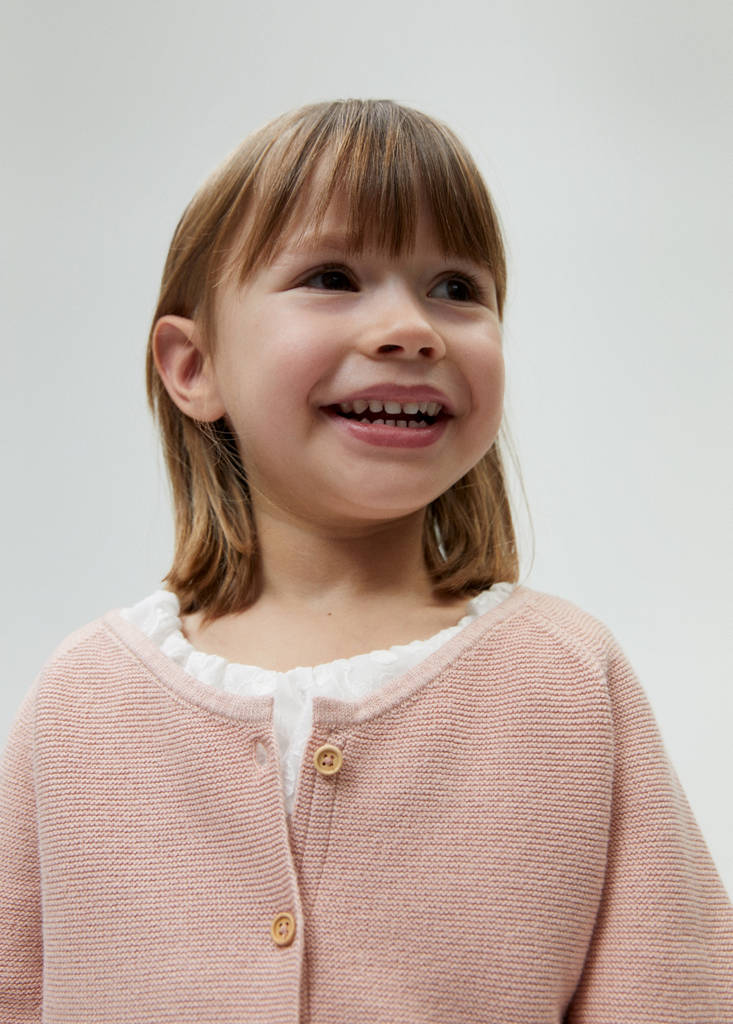 Càrdigan punt cotóPreu inicial ratllat [€ 16,99 ]€ 16,99Preu actual [€ 12,99 ]€ 12,99-24 %Selecciona un colorRosa pastelSelecciona la teva talla9-12 mesos (80cm)No disponible. Ho vull!12-18 mesos (86cm)No disponible. Ho vull!18-24 mesos (92cm)No disponible. Ho vull!2-3 anys (98cm)No disponible. Ho vull!3-4 anys (104cm)No disponible. Ho vull!4-5 anys (110cm)No disponible. Ho vull!MidesAvisa'mCol·lecció festa i cerimònia. Teixit amb cotó. Teixit de punt fi. Coll punta. Màniga tres quarts. Tanca de botons. Aquesta peça també està disponible a la col·lecció de Kids Girl. Detalls, composició i curesDisponibilitat a botiga