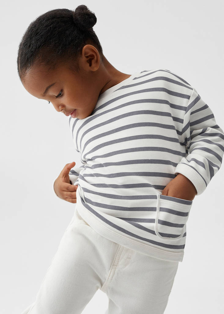 100% cotó. Estampat de ratlles. Disseny recte. Coll rodó. Màniga llarga