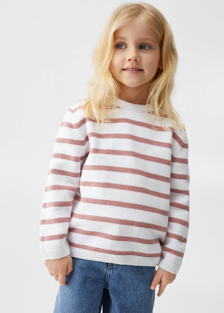 Teixit barreja de cotó. Punt mitjà. Disseny de ratlles. Coll rodó. Màniga llarga. Tanca de botó a la part posterior
