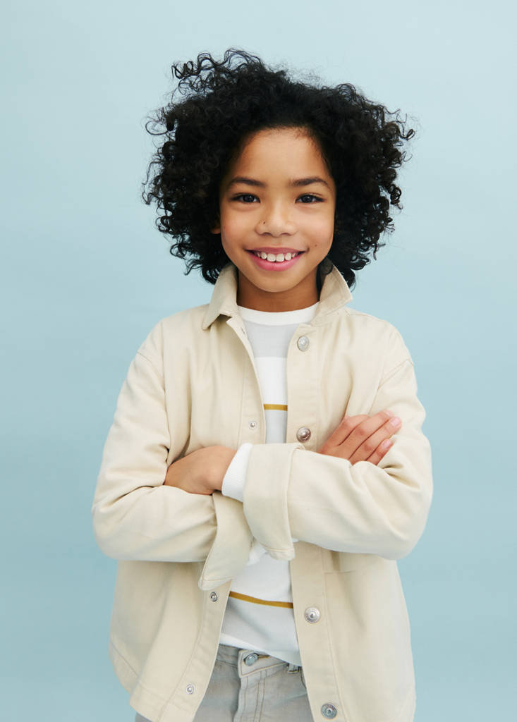 100% cotó. Disseny recte. Teixit de sarja. Dues butxaques de solapa a la part davantera. Coll camiser. Tancament davanter de botons a pressió
