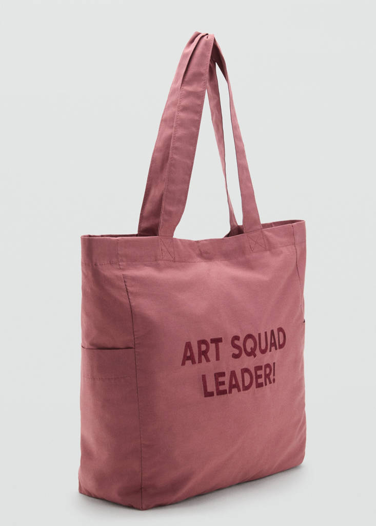 Teixit 100% cotó. Disseny tote. Dues nanses d'espatlla. Dues butxaques laterals. Tancament de botó a pressió. Folre interior de ratlles. Text brodat. Combina'l amb el necesser de la col·lecció