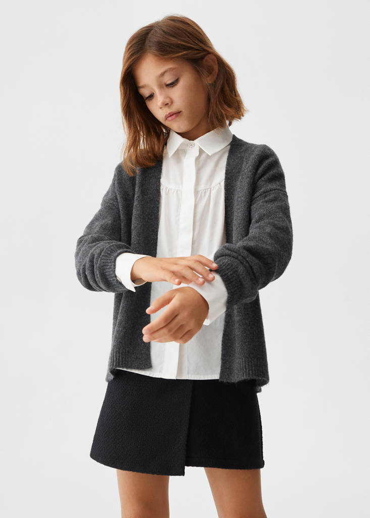 Col·lecció Bàsics, teixit de punt, detall brillant, disseny llarg, disseny recte, màniga llarga, sense tanca.