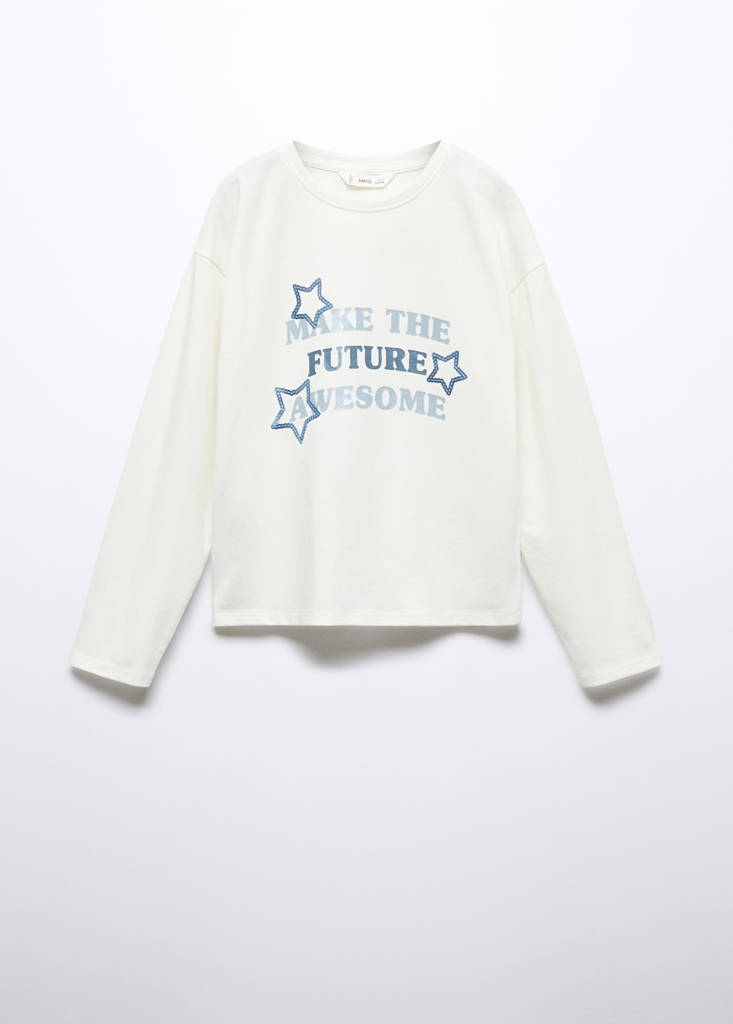 100% cotó, disseny recte, missatge estampat, coll rodó, màniga llarga.