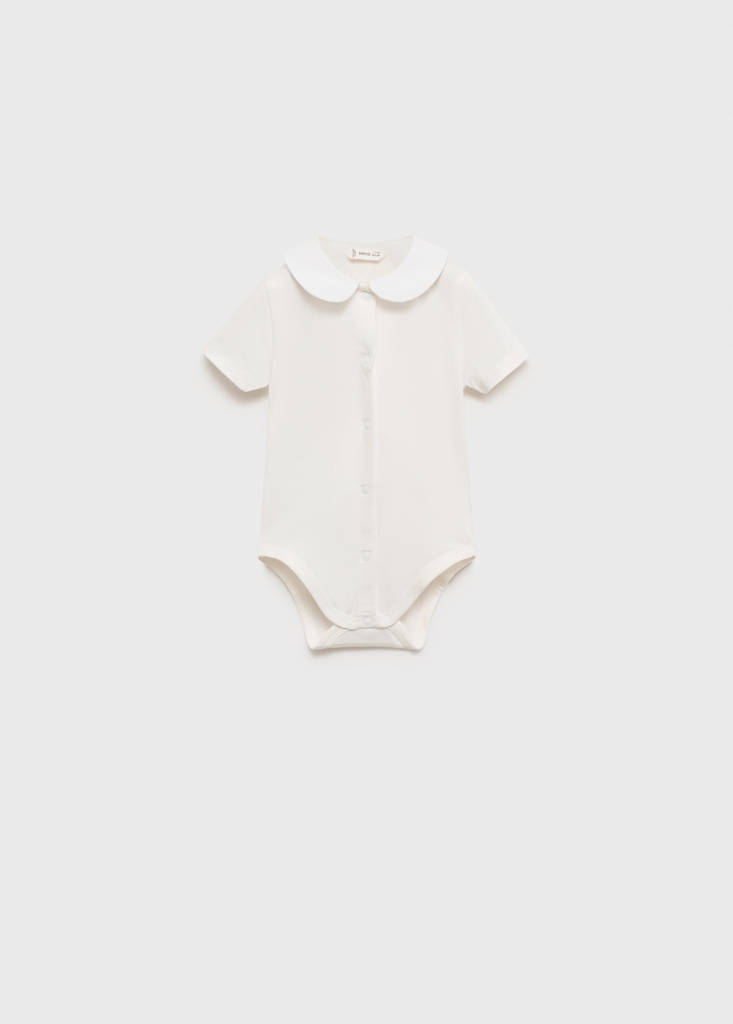 Teixit de cotó. Disseny recte. Coll bebè. Màniga curta. Tancament metàl·lic a pressió. Tanca metàl·lica a pressió a la vora