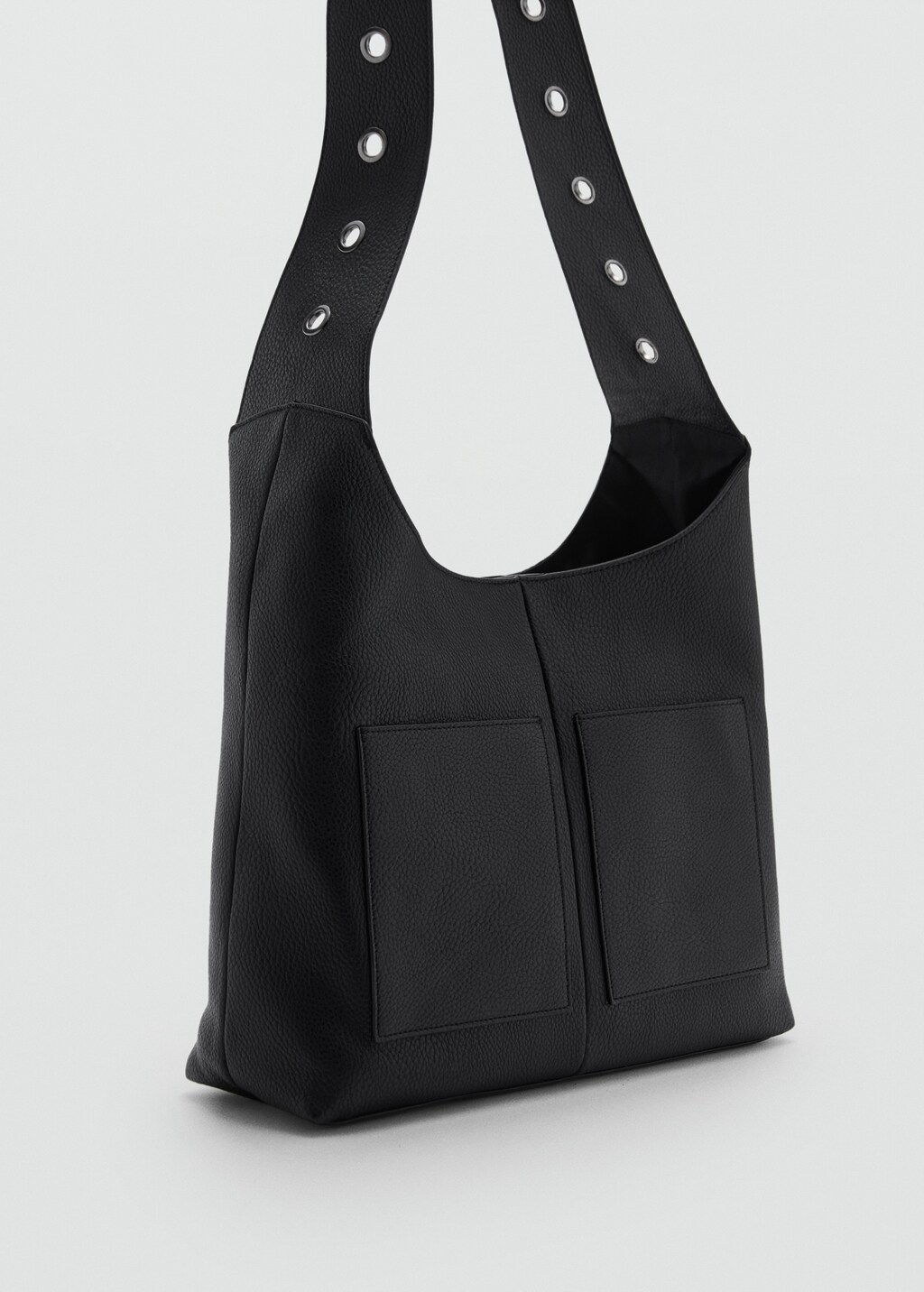Mida mitjana. Nansa llarga. Nansa d'espatlla. Dues butxaques. Butxaca interior. Folre interior. Tancament de botó a pressió.