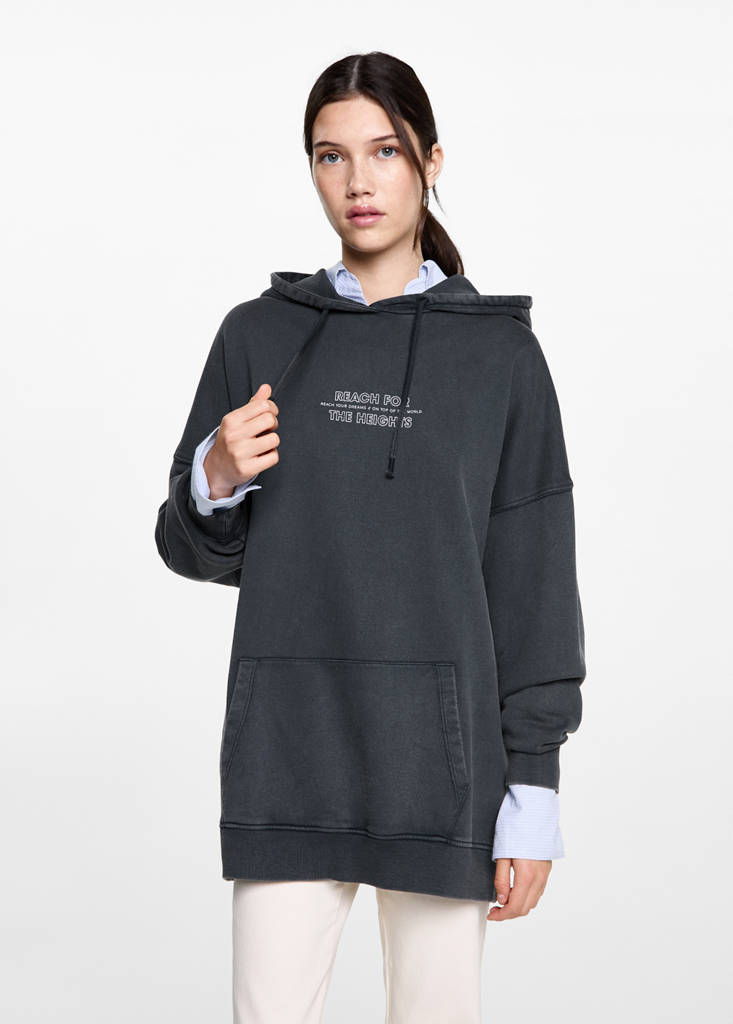 Teixit de cotó. Disseny estampat davanter. Disseny estampat a la part posterior. Disseny oversize. Màniga llarga. Coll rodó. Caputxa