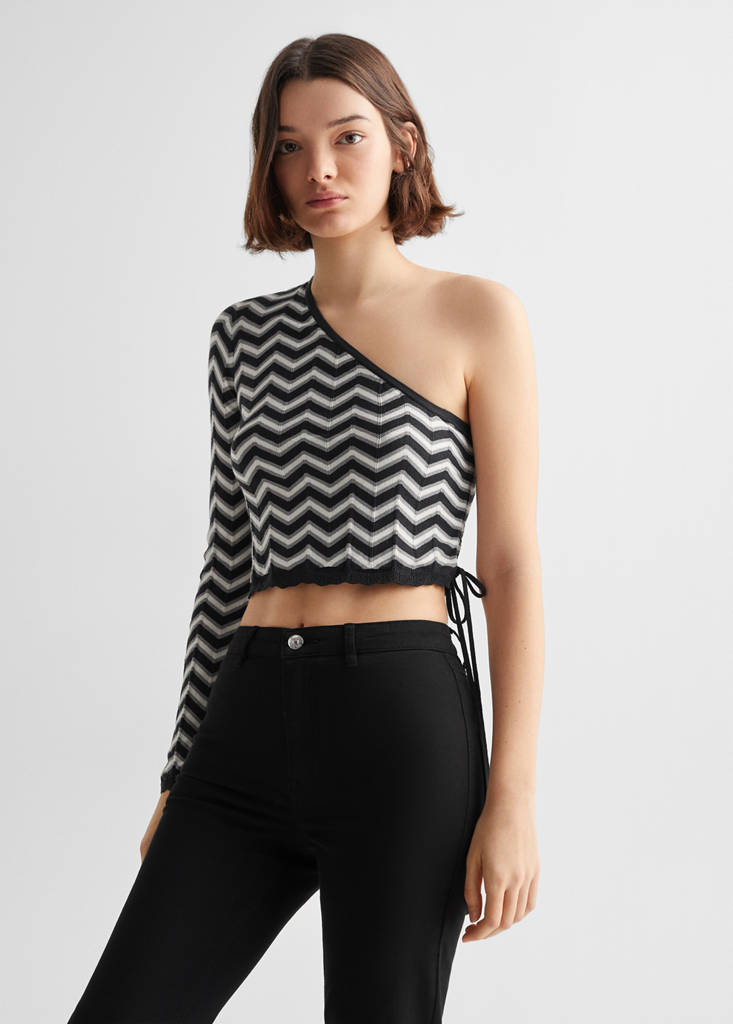 Jersei punt asimètricPreu inicial ratllat [€ 22,99 ]€ 22,99Segon preu ratllat [€ 17,99 ]€ 17,99Preu actual [€ 4,49 ]€ 4,49-80 %Selecciona un colorNegreSelecciona la teva tallaXXSNo disponible. Ho vull!XSÚltimes unitats!SNo disponible. Ho vull!MNo disponible. Ho vull!LNo disponible. Ho vull!MidesAfegirConjunt. Total look. Teixit de punt fi. Estampat. Disseny asimètric. Disseny crop. Coll asimètric. Una màniga. Màniga llarga. Sense tancamentDetalls, composició i curesDisponibilitat a botiga