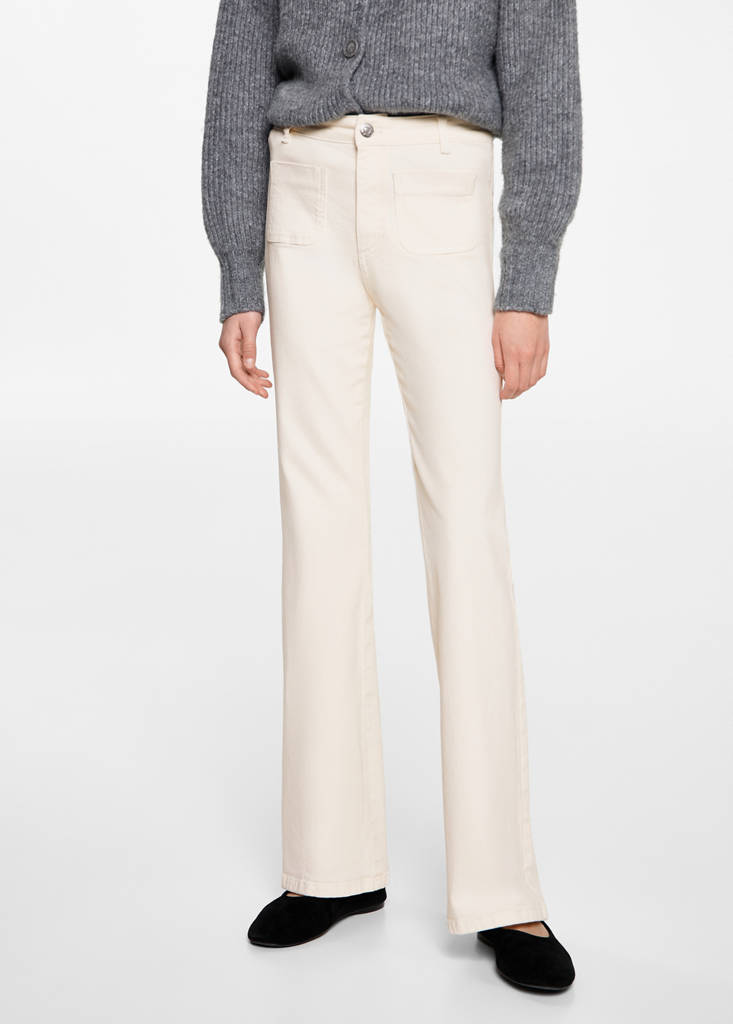 Teixit de cotó estil texà vaquer. Estil acampanat. Disseny llarg. Dos butxaques de pedaç a la part davantera. Dos butxaques de pedaç a la part posterior. Trabels a la cintura. Tancament de botó i cremallera