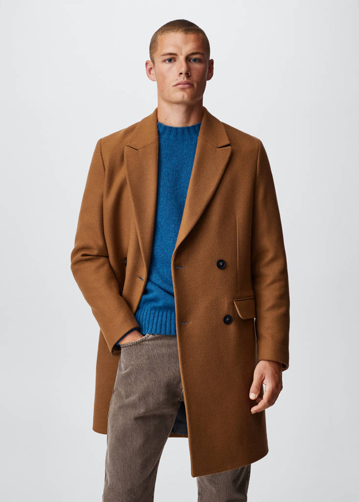 Diseño largo. Diseño cruzado. Solapa peak. Cierre delantero. Manga larga. Tamaño mediano. Cierre de botones. Forro interior. Bolsillo interior. Diseño estándar. Solo forro. Tejido mezcla de lana. Solapas con muesca. Dos bolsillos de solapa laterales. Regular fit