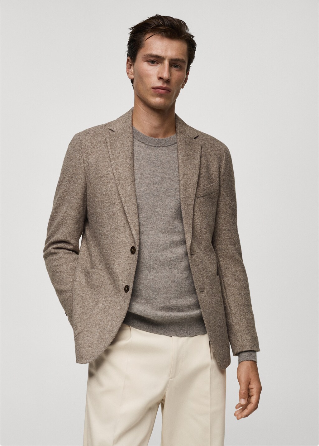 Colección Selection. Cuello solapado con muesca. Cierre de doble botonadura. Bolsillo de ribete en el pecho. Dos bolsillos de parche en la parte delantera. Manga larga con puños abotonados. Bolsillos interiores. Doble abertura posterior en el bajo. Slim fit. Confeccionado en Portugal. Tejido franela mezcla lana virgen italiana. Diseño jaspeado.