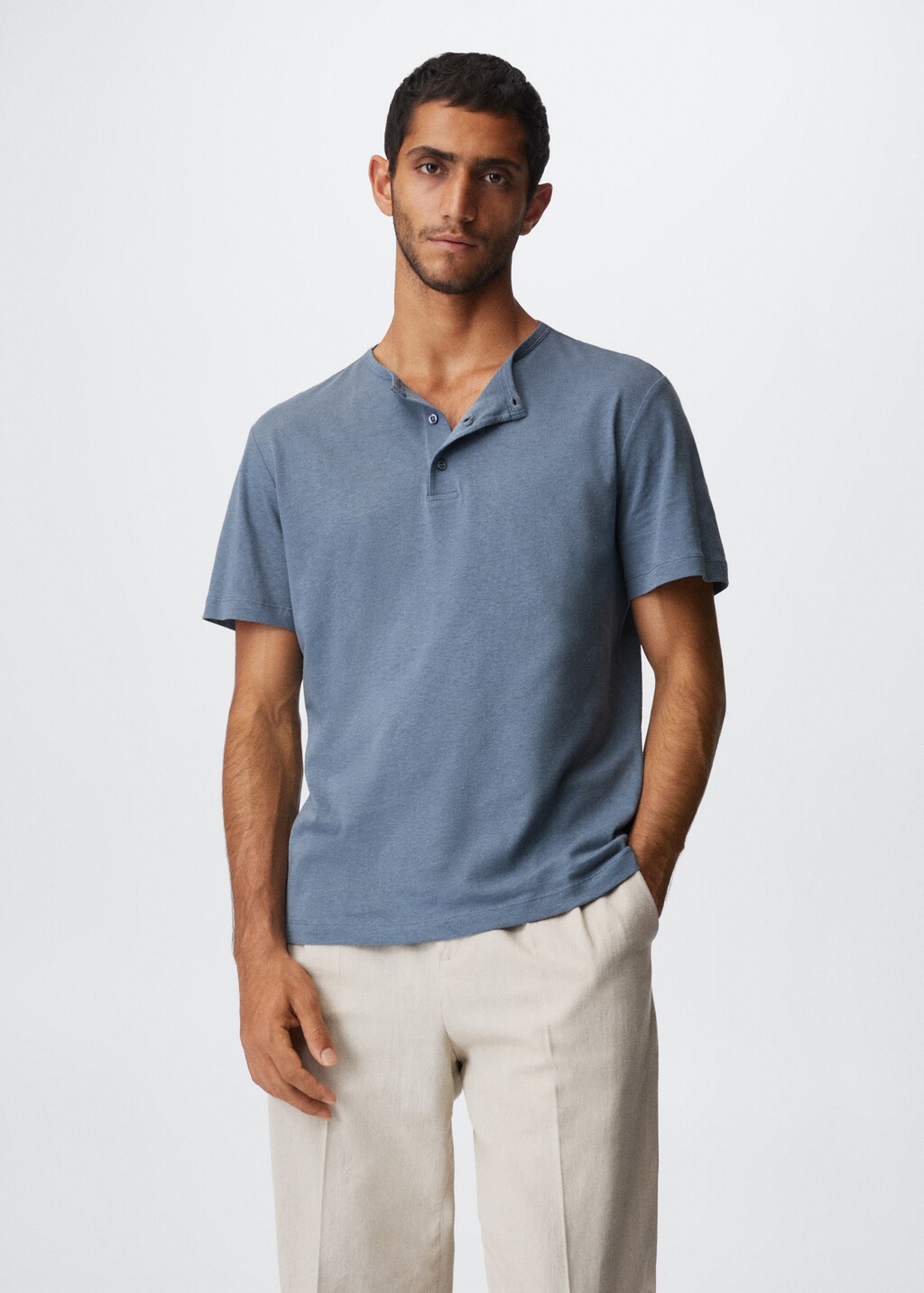 Camiseta cuello panadero linoPrecio inicial tachado [€ 25,99 ]€ 25,99Precio actual [€ 19,99 ]€ 19,99-23%Selecciona un colorAzul indigoSelecciona tu tallaXSNo disponible ¡Lo quiero!SNo disponible ¡Lo quiero!MNo disponible ¡Lo quiero!LNo disponible ¡Lo quiero!XLNo disponible ¡Lo quiero!XXLNo disponible ¡Lo quiero!Guía de tallasAvísameDescripciónSlim fit. Tejido mezcla de algodón y lino. Cuello panadero. Manga corta. El modelo mide 183 cm y lleva una talla M.Ver detallesCompartir