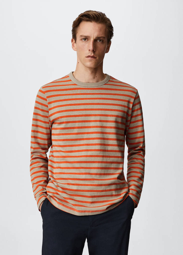 Camiseta manga larga rayasPrecio inicial tachado [€ 25,99 ]€ 25,99Precio actual [€ 19,99 ]€ 19,99-23 %Selecciona un colorNaranjaSelecciona tu tallaXSNo disponible ¡Lo quiero!SNo disponible ¡Lo quiero!MNo disponible ¡Lo quiero!LNo disponible ¡Lo quiero!XLNo disponible ¡Lo quiero!XXLNo disponible ¡Lo quiero!MedidasAvísameRegular fit. Diseño de rayas. Tejido de algodón sostenible. Cuello redondo. Manga larga. El modelo mide 187 cm y lleva una talla MDetalles, composición y cuidadosDisponibilidad en tienda
