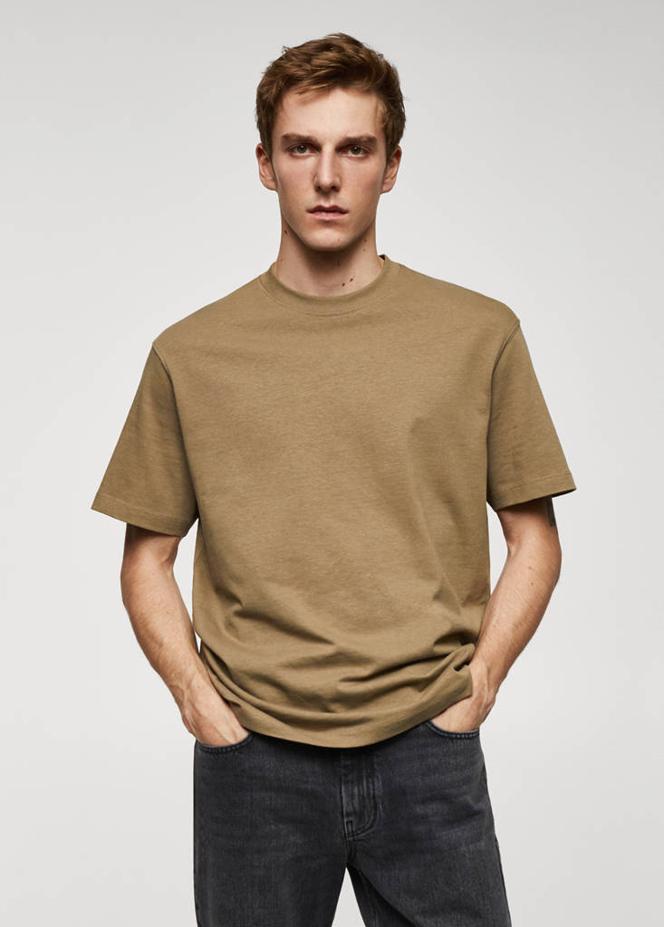 El color marrón medio es exclusivo online. Relaxed fit. Relaxed fit: Silueta de corte recto y holgado que aporta confort. Tejido de algodón sostenible. Gramaje medio de algodón, entre 145 y 165 g/m2, que aporta flexibilidad y resistencia. Cuello redondo. El modelo lleva una talla M. Manga corta. Tejido 100% algodón. Colección Básicos. Tejido ligero. Diseño estándar. Relaxed. Campaña Antoine Griezmann