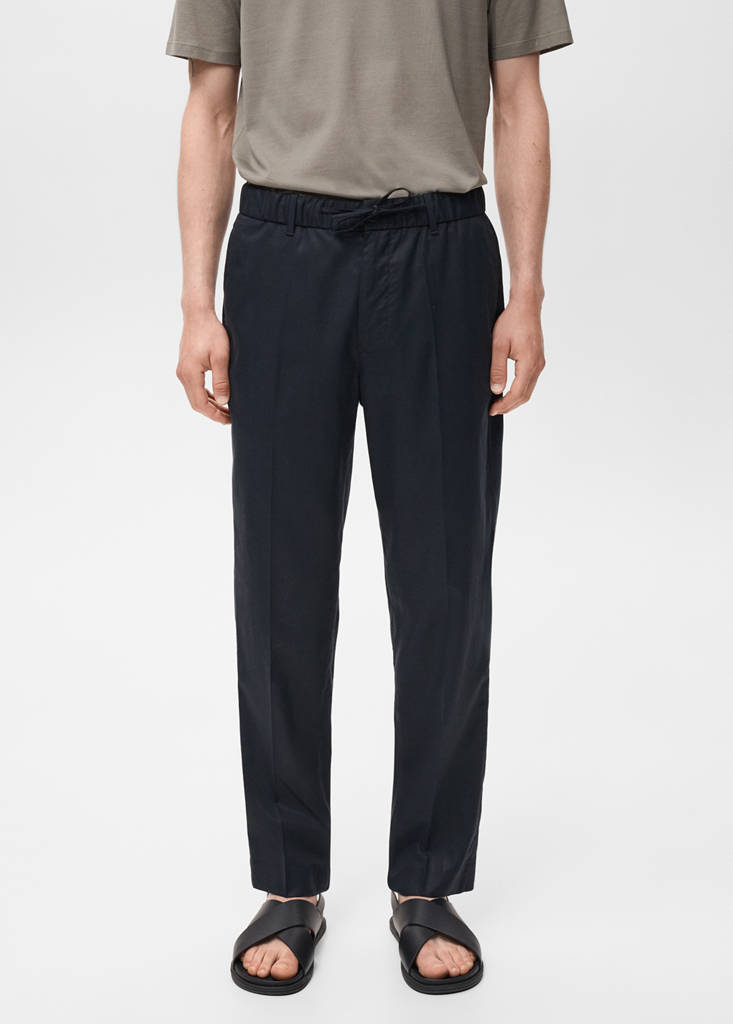 El color azul es exclusivo online. Diseño jogger. Tejido mezcla algodón y lyocell. El tejido lyocell ofrece una alta comodidad y fluidez. Tejido Tencel™ de gran resistencia, absorción eficiente de la humedad y suavidad para la piel. Cintura elástica con cordón. Dos bolsillos laterales. Bolsillo de ribete en la parte posterior. Elástico en el bajo