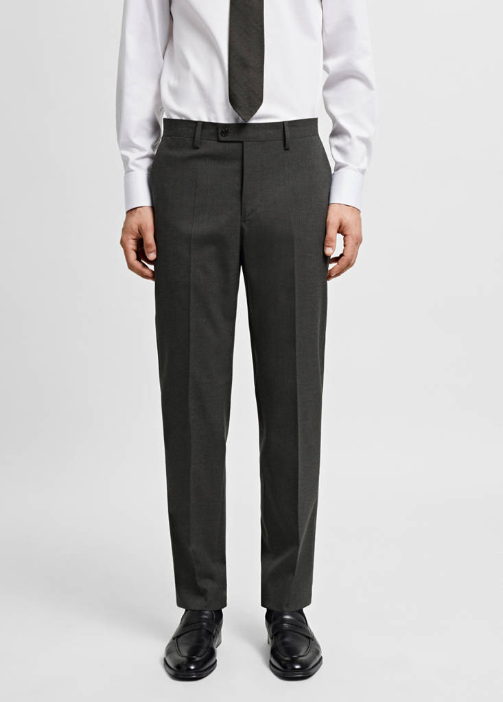 Colección sastrería. Slim fit. Comfort Stretch: Tejido elástico que aporta un plus de comodidad. Confeccionado en poliéster reciclado, una fibra resistente, transpirable y de fácil cuidado, que aporta comodidad en el uso. Acabado microestructura. Tiro medio. Cierre oculto de botón, gancho y cremallera. Trabillas para cinturón. Dos bolsillos laterales. Bolsillo portamonedas oculto a la altura de la cadera. Detalle de raya planchada en la parte delantera y trasera. Comfort: Esta prenda le ofrece total libertad de movimientos y recupera su forma original. Bolsillo de ribete en la parte posterior