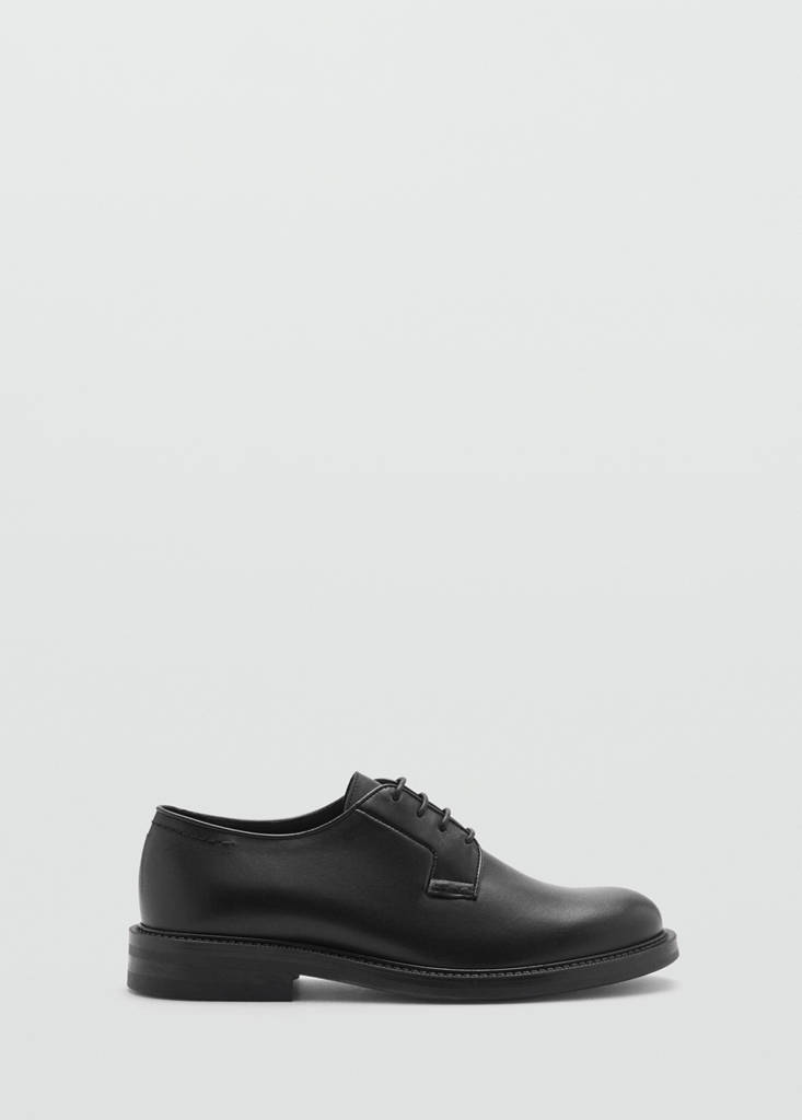100% piel bovino. Estilo blucher corte clásico. Cierre de cordones con cuatro pasadas. Detalles pespunteados. Punta redonda. Suela del mismo tono. Fabricado en Portugal