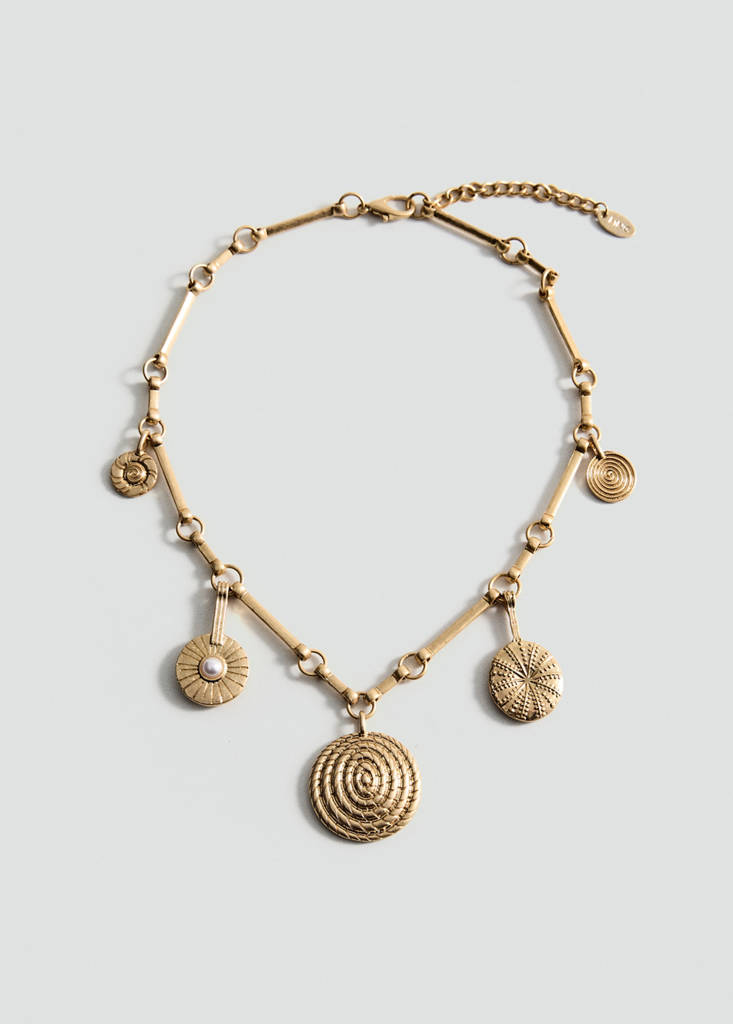 Diseño cadena. Colgante de abalorios. Diseño combinado. Cierre de cadena y mosquetón
