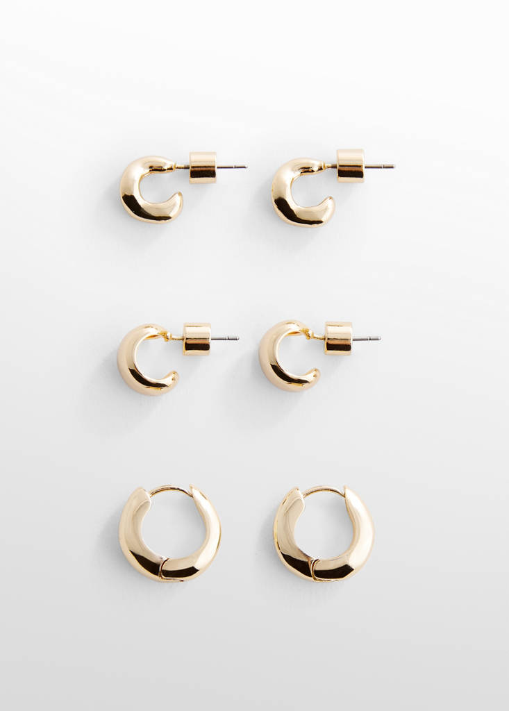 Set pendientes arosPrecio inicial tachado [€ 11,99 ]€ 11,99Precio actual [€ 7,99 ]€ 7,99-33 %Selecciona un colorOroSelecciona tu tallaTalla únicaNo disponible ¡Lo quiero!AvísameAros metálicos. Cierre a presión. Cierre metálico a presión. Pack de 6 Detalles, composición y cuidadosDisponibilidad en tienda
