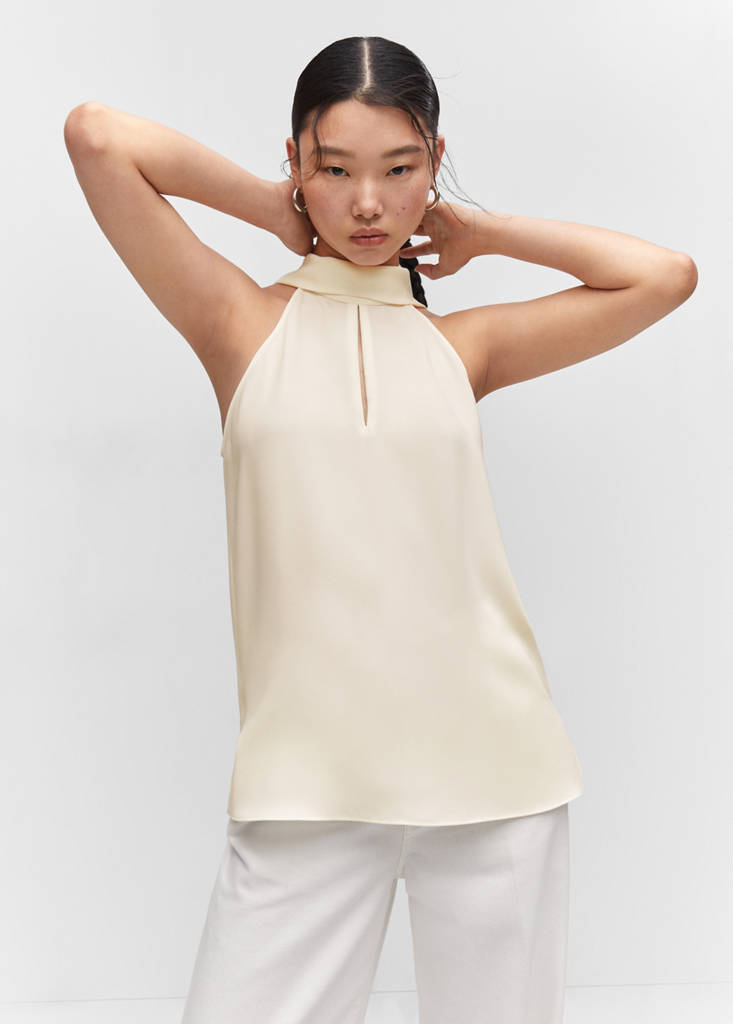Blusa halter detalle aberturaPrecio inicial tachado [€ 29,99 ]€ 29,99Precio actual [€ 20,99 ]€ 20,99-30 %Selecciona un colorCrudoLa modelo lleva la talla S y mide 178cm.Selecciona tu tallaXXSNo disponible ¡Lo quiero!XSNo disponible ¡Lo quiero!SNo disponible ¡Lo quiero!MNo disponible ¡Lo quiero!LNo disponible ¡Lo quiero!XLNo disponible ¡Lo quiero!XXLNo disponible ¡Lo quiero!MedidasAvísameDisponible Plus. Tejido fluido. Diseño recto. Cuello halter. Sin mangas. Colección fiesta, ceremonia y comunión. Looks de oficinaDetalles, composición y cuidadosDisponibilidad en tienda