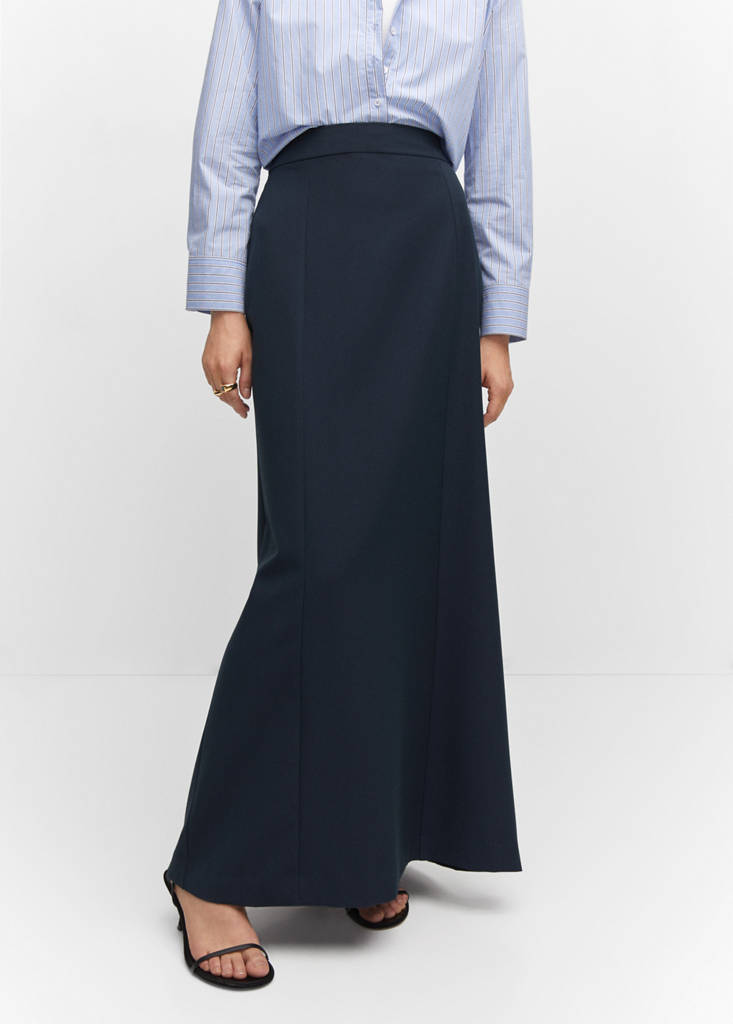 Tejido fluido. Diseño largo. Diseño evasé. Cierre de cremallera invisible en la parte posterior. Detalle de pinzas. Abertura posterior en el bajo. Bolsillo decorativo en la parte posterior. Total look. Colección fiesta, ceremonia y comunión. Looks de oficina