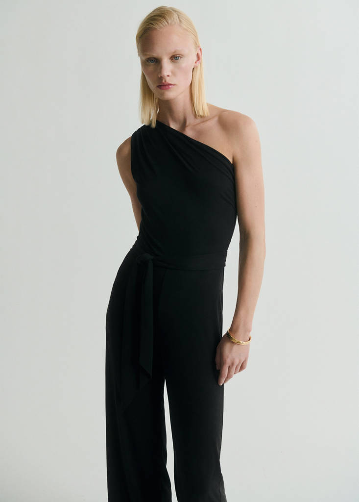 Diseño largo. Diseño recto. Cuello asimétrico. Sin mangas. Tirante ancho. Cinturón desmontable. Sin cierre