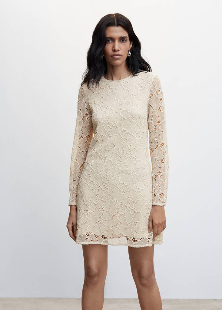 Tejido de encaje. Diseño entallado. Diseño corto. Cuello redondo. Manga larga. Cierre de cremallera en la parte posterior. Forro interior. Largo prenda 85 cm. Total look. Colección fiesta y ceremonia
