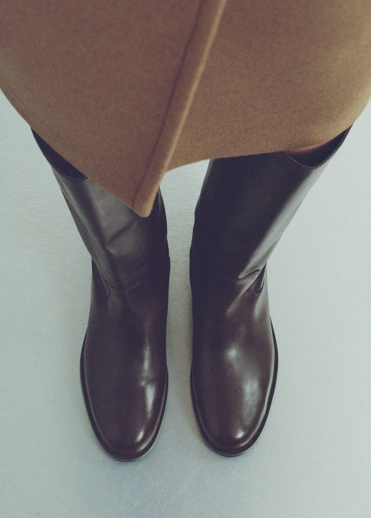 ¡Más vendido!Bota alta pielPrecio inicial tachado [€ 99,99 ]€ 99,99Precio actual [€ 79,99 ]€ 79,99-20 %Selecciona un colorChocolateSelecciona tu talla35No disponible ¡Lo quiero!36¡Últimas unidades!37383940¡Últimas unidades!41¡Últimas unidades!42No disponible ¡Lo quiero!MedidasAñadir100% piel bovino. Flat. Punta redonda. Caña alta. Sin cierre. Forro interiorDetalles, composición y cuidadosDisponibilidad en tienda