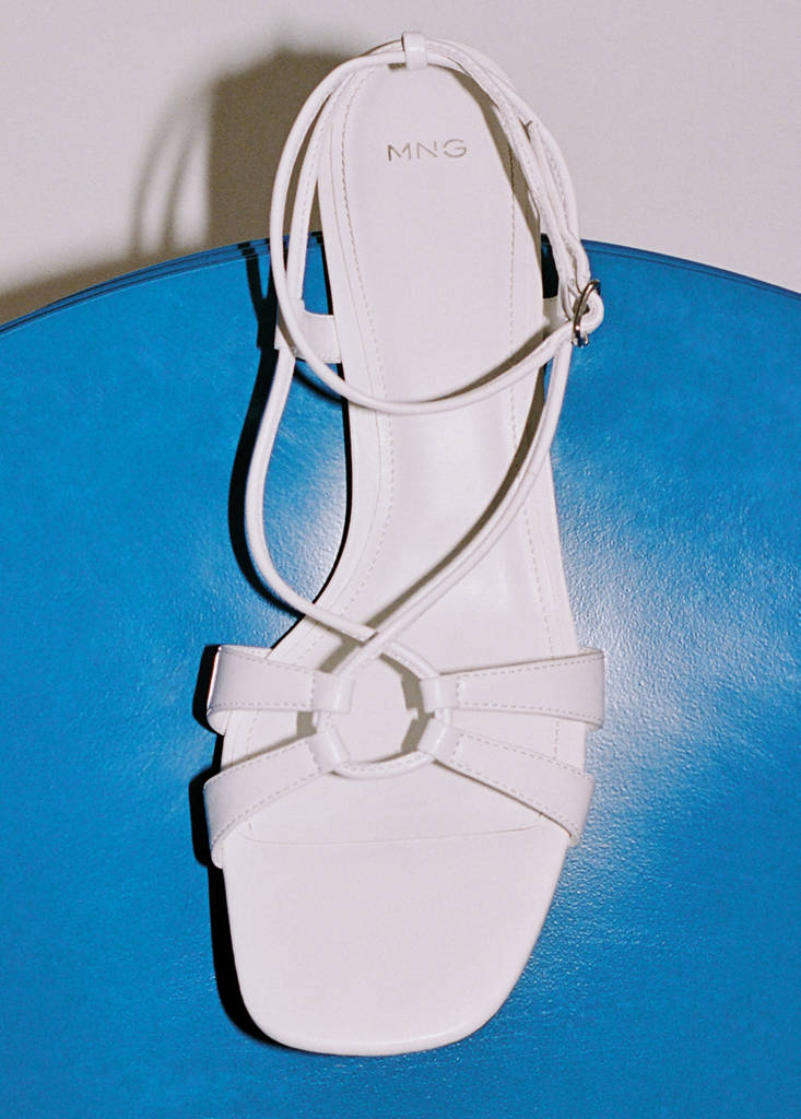 Diseño de tiras. Punta cuadrada. El tacón mide 5 cm. Cierre de tira con hebilla