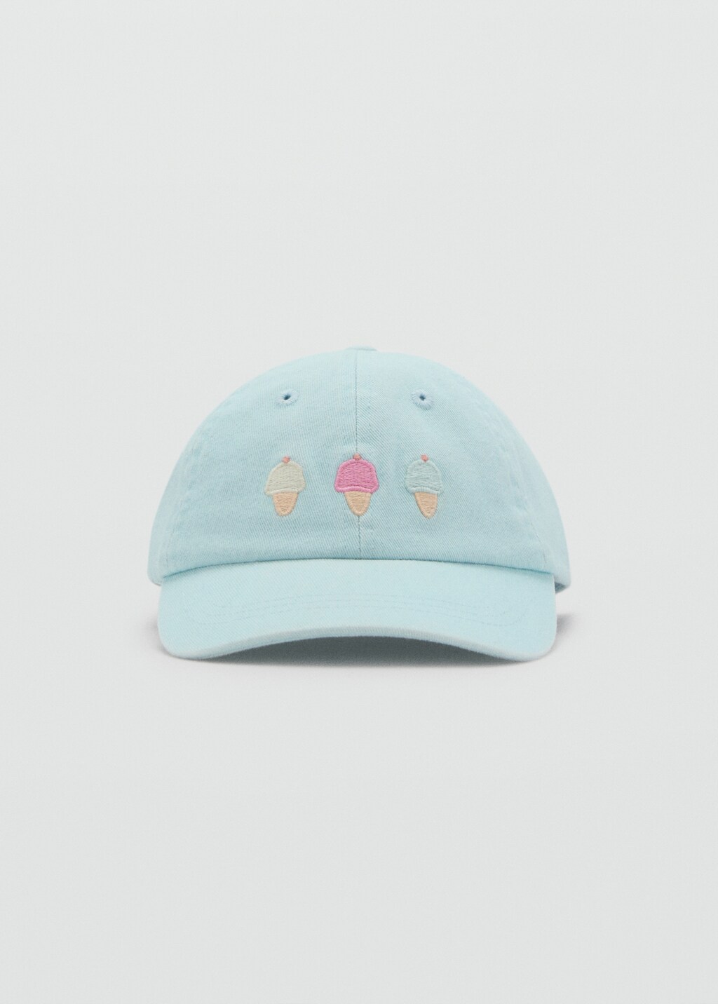 100% Algodón. Diseño de helados. Con visera. Hebilla ajustable. Detalles bordados.